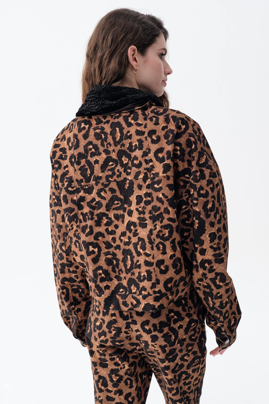 Chaqueta con botones en el frente y cuello en piel sintetica negra desmontable. El estampado animal print es exclusivo de Doll y es una prenda de edicion limitada.