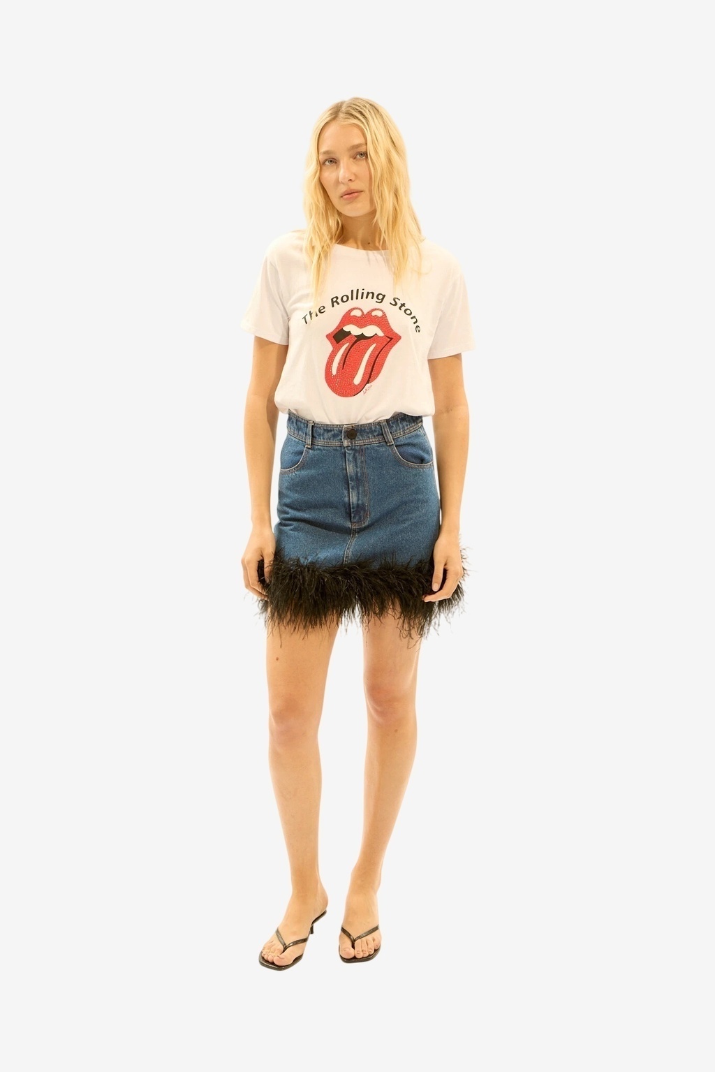 Descubrí la fusión perfecta entre lo clásico y lo moderno con esta pollera de jean de tiro alto, confeccionada en 100% algodón. Su diseño exclusivo incorpora elegantes plumas negras en el ruedo, que le aportan un toque sofisticado y único a tu look. Ideal para destacar con estilo en cualquier ocasión.