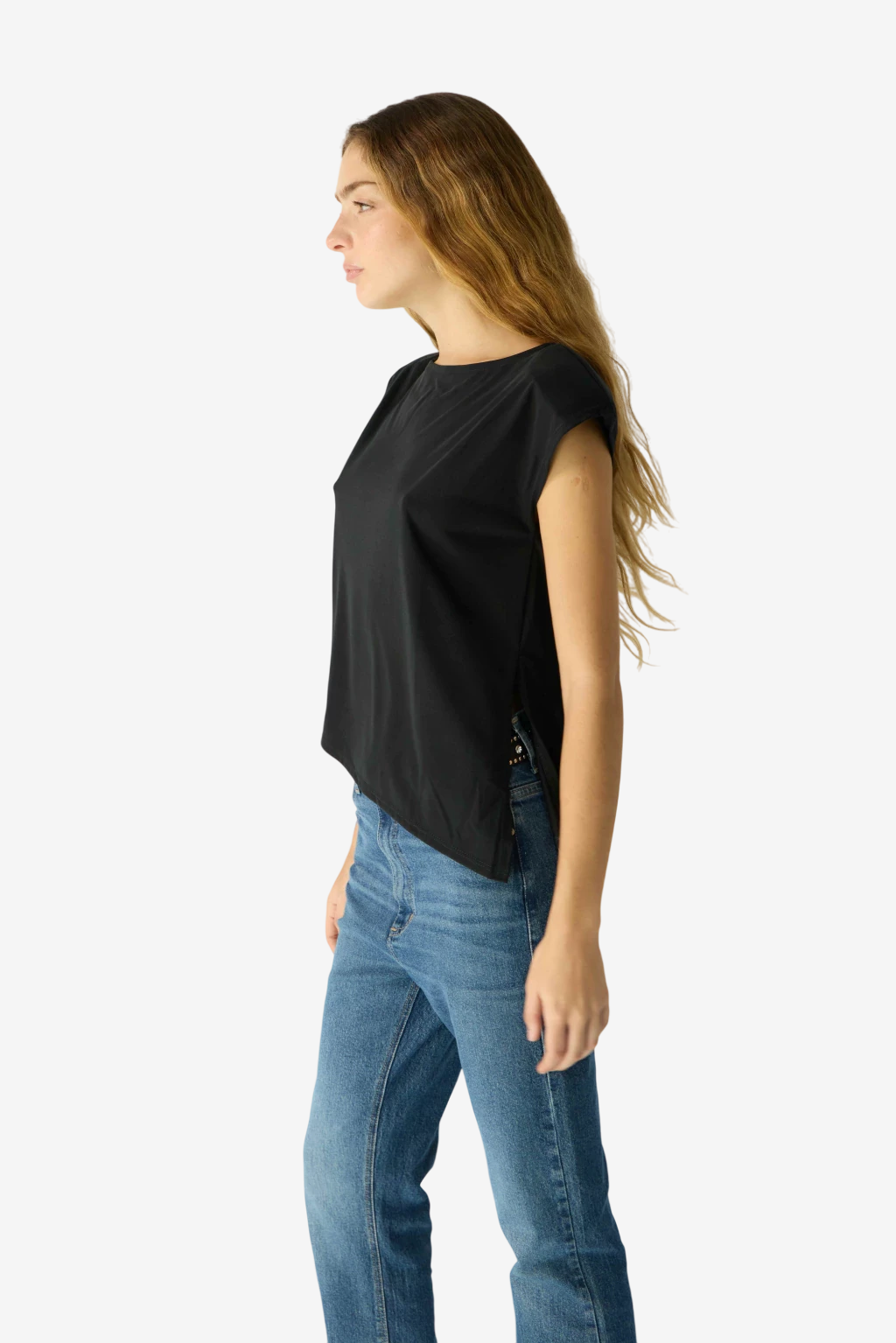 Remera manga corta en cupro (la mejor tela de punto! la conoces?) con largo irregular. Esta remera gracias a su composicion tiene una super caida y es muy suave al tacto. Es un hit.