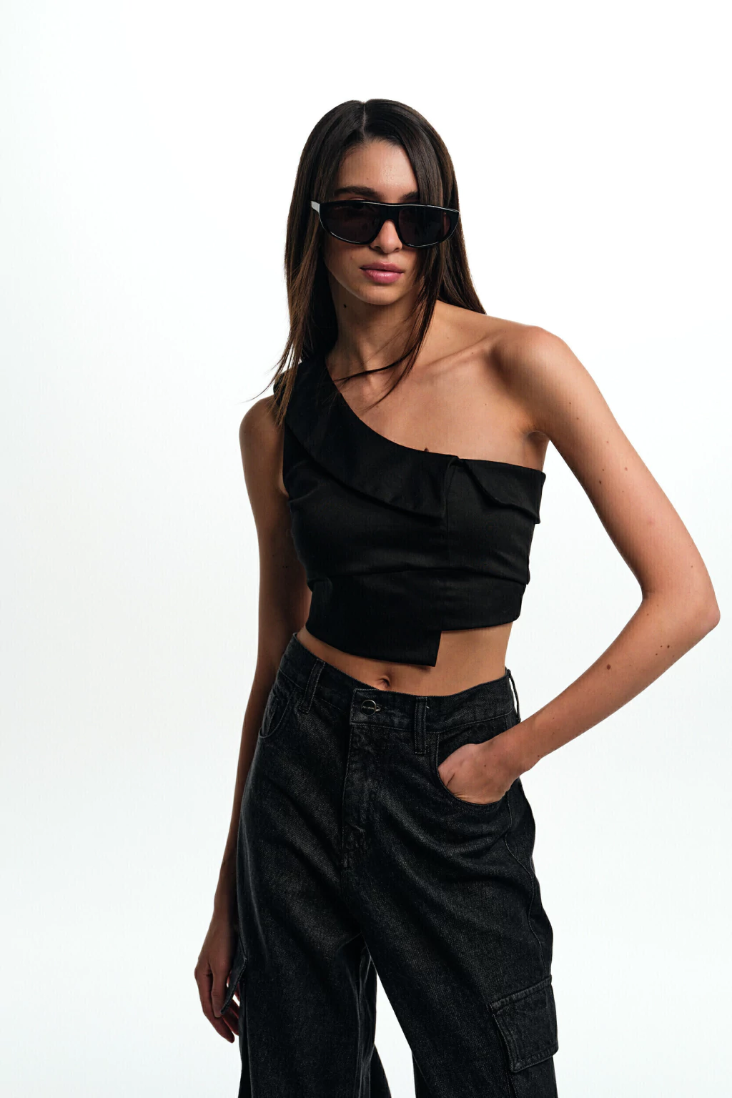 Top asimetrico de 1 solo hombro, con cierre invisible lateral.